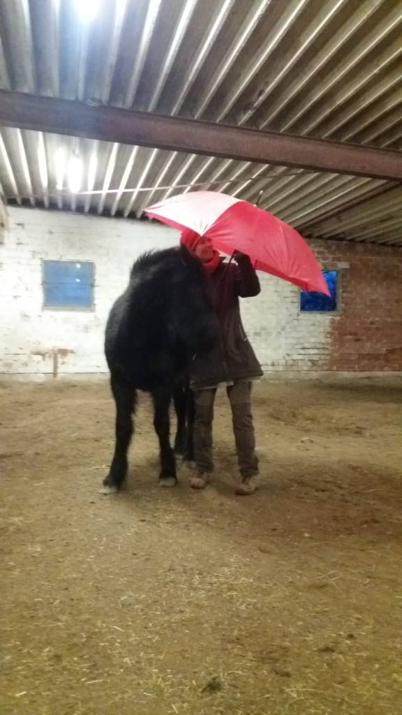 Nun, wir werden sehen. Das kleine, gut geölte, PS-starke Maschinchen zwischen seinen Ohren läuft jedenfalls Tag für Tag auf Hochtouren. Er beobachtet mich und zieht seine ganz eigenen Rückschlüsse – wie viel er von diesen Rückschlüssen preis gibt und wie viele er für sich behält, weiß ich nicht. Und ich beobachte ihn, mit zunehmendem Vergnügen, und bin froh, dass ich so ein tolles Pony gefunden habe und dass die Verrücktheit, ihn zu kaufen, sich als echter Glücksfall entpuppt.