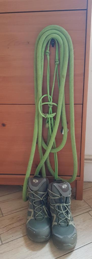 Sie hat sich sogar extra neue Schuhe gekauft, damit wir jetzt längere Spaziergänge machen können. Und sie hat darauf geachtet, dass die Schuhe farblich zu meinem Halfter passen, so dass wir jetzt im Partnerlook gehen. Ach, da wird mir ganz romantisch!