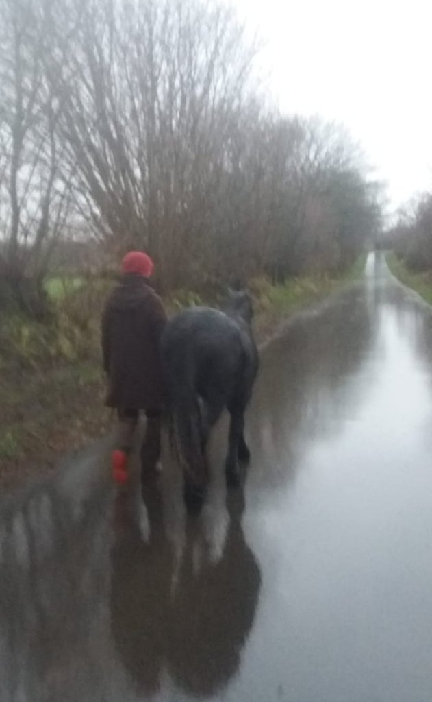 Aber jetzt ändert sich etwas. Denn jetzt sind da plötzlich neben den Erinnerungen an „die besten Ponys 1.0“ auch neue Erinnerungen an „die besten Ponys 2.0“. Als wir neulich spazieren waren, sind wir auf jenem Weg unterwegs gewesen, der unser erster Anhängerausflugs-Weg mit Duncan und seinem Spaziergehkumpel Freddy war. Damals – das ist jetzt etwas über ein Jahr her – haben wir uns darüber unterhalten, dass die Pferdemesse wegen Corona abgesagt wurde. Aber von Lockdown, Kontaktbeschränkungen, Wellen, Schnelltests und Impfungen hatten wir noch keine Ahnung. Wir waren mit den beiden Jungspunden im Anhänger eine ganz kurze Strecke gefahren und dann vom Wanderparkplatz aus nach hause gelaufen. Und es hat geregnet. Ach, was sage ich, es hat geschüttet! Das Wasser lief die Straße und die Baumstämme herunter. Und mein kleiner Ritter, zu diesem Zeitpunkt noch keine 1,5 Jahre alt und erst ein knappes halbes Jahr bei mir, war dann doch gegen Ende ein bisschen durch mit dem Lack. Das sind die Dinge, an die man sich erinnert. Viel mehr als an die schönen, ruhigen und entspannten Spaziergänge, die mir viel Kraft geben, aber weniger im Gedächtnis bleiben.
