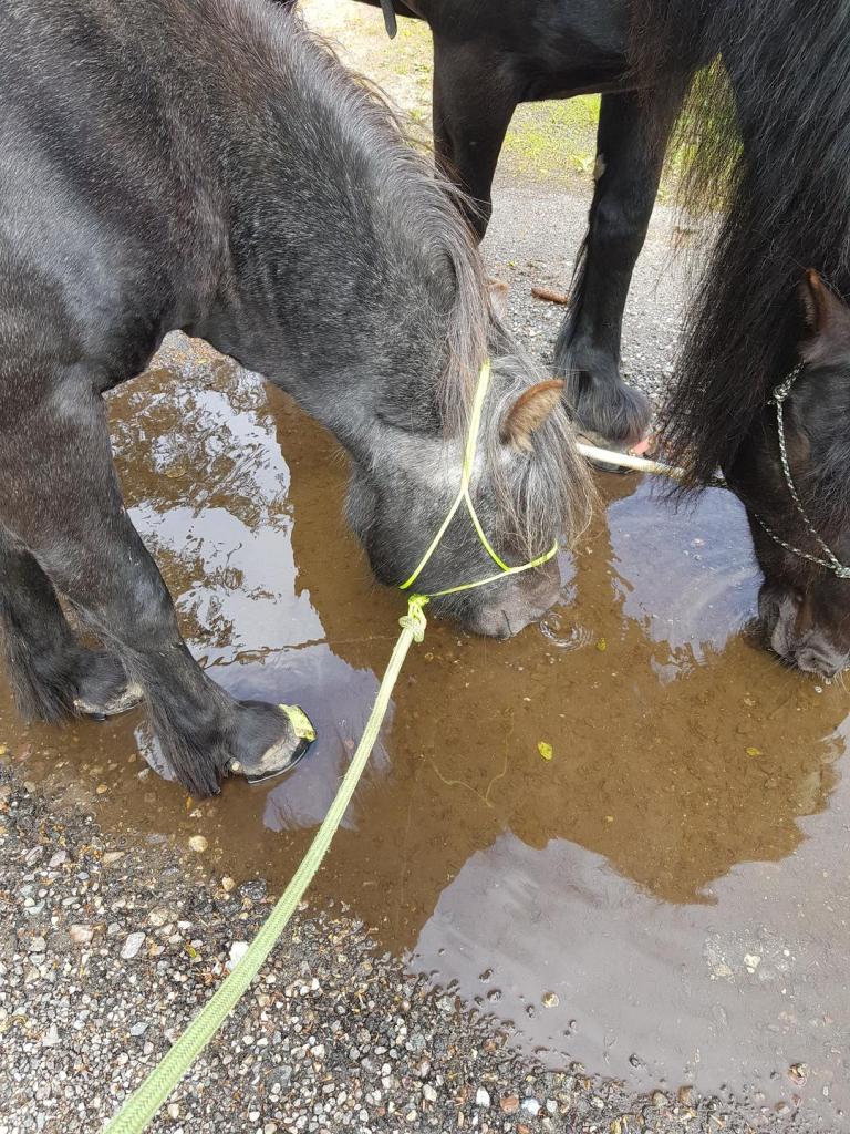 Wer viel aus den Pfützen trinkt, muss dann auch öfter mal eine Pfütze machen. Mein Mädchen sagt, ich hätte eine „Sextanerblase“. Ihr Papa hat früher immer zu ihr gesagt, sie sei ein „Durchlauferhitzer“. Weil sie auch sooooooo oft Pfützen machen musste als sie klein war. Allerdings muss sie das heute auch noch. Dann sagt sie immer der Tee ist schuld. Und jetzt frage ich mich, ob in den Pfützen aus denen ich trinke, wohl Tee ist. Naja, ich schweife ab! Jedenfalls verkoste ich jede Pfütze. Die meisten sind aber nicht so lecker, dann trinke ich nur einen Schluck. Und halte ein paar Meter weiter bei der nächsten Pfütze wieder an um die zu probieren. Vielleicht ist die leckerer? Mein Mädchen ist dann irgendwann genervt und sagt, sie macht das nicht mehr mit. Und dass die Verhaltensweisen über die sie sich am Anfang so gefreut hat, weil sie für ein Distanzpferd wichtig sind – nämlich unterwegs Pfützen leeren und neue Pfützen machen – ein bisschen überhand genommen hätten bei mir und dass wir jetzt einfach mal weiter gehen. Na gut. Aber dann zügig Mädchen, hopp hopp!