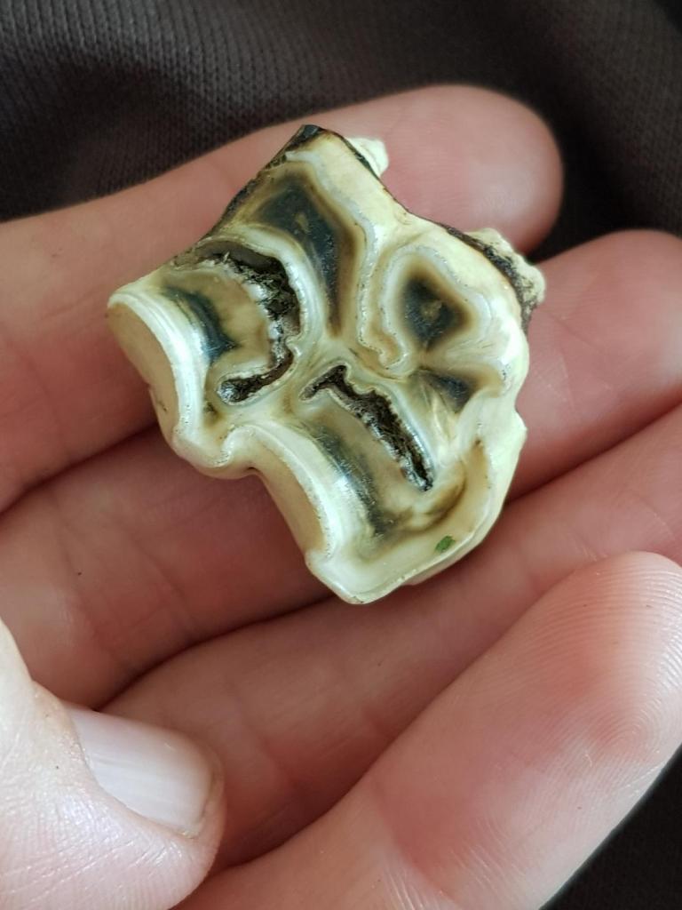 Da mein Mädchen mir ja nix zutraut und meint ich könnte nix alleine schaffen – noch nicht mal den Zahnwechsel – hat er dann meine Beißerchen kontrolliert. Da hing noch eine olle Milchzahnkappe überm Backenzahn, die hat er mir weg gemacht, das war ganz angenehm. Klar, hätte ich alleine auch noch gekonnt, hätte halt länger gedauert. Bei uns Ponys löst sich die Wurzel vom Milchzahn auf, wenn es Zeit ist, den neuen Zahn raus zu schubsen und die Kappe bleibt übrig. Die auf der anderen Seite hatte ich schon weg gemacht. Na er hat also diese schöne Kappe abgezogen und meinem Mädchen geschenkt. Die hat sich doll gefreut! Na kannst Du behalten mein Mädchen, brauche ich nicht mehr. Ich hab ja jetzt den neuen Zahn. Da wusste mein Mädchen dann auch ganz sicher, dass meine „Bissigkeit“ in letzter Zeit vom Zahnen kam, das hatte sie sich schon gedacht. Sie kennt mich ja und weiß dass ich nicht einfach so in den Strick beiße und so. Das stört halt wenn da so was halb locker im Maul rum hängt! Da muss ich jede Gelegenheit nutzen um das loszuwerden.