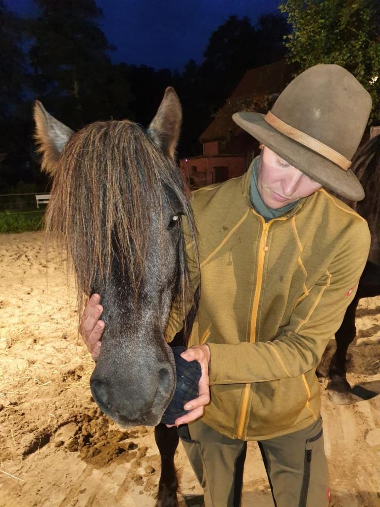 Aber wir haben einen Deal gemacht: paar Sekunden die eine Stelle kühlen, dann eine andere, denn noch eine andere und dann hab ich einen Keks bekommen. Dann das ganze von vorn. So ging es dann schließlich doch ganz gut. Und so nach einer guten Stunde war es schon viel besser. Dann haben sie mir noch so ein Spray drauf gemacht und ich durfte erst mal Heu essen gehen. Aber natürlich kam mein Mädchen dauernd wieder angerannt um zu gucken ob es mir auch wirklich gut geht. Auch mitten in der Nacht kam sie wieder mit halb geschlossenen Augen in den Stall getorkelt Diego war grad so schön am schlafen und ich hab bisschen Heu geknabbert. Bin dann zu ihr hin geschlurft, hab mir einen Keks geholt und bin wieder zurück geschlurft zum Heu, ohne Diego zu wecken.