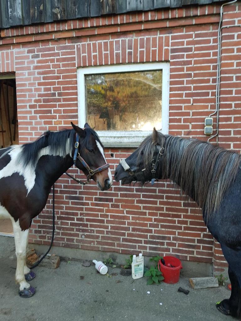 Dann werden mein Spaziergehkumpel und ich erst mal nebeneinander angebunden und geputzt. Währenddessen unterhalten wir uns und schmieden Pläne für den Nachmittag.