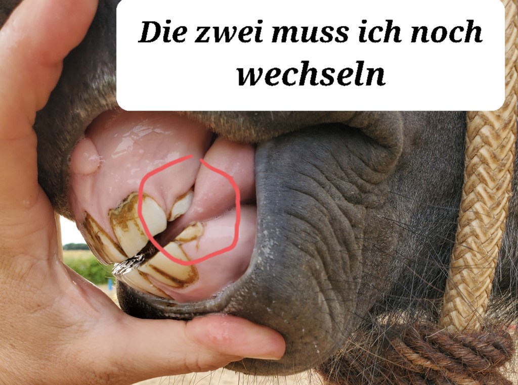 Aber zurück zum Thema: der Zahnarzt war da. Und wisst Ihr, was er gesagt hat? Ich wäre sehr, sehr viel erwachsener geworden seit er mich das letzte Mal gesehen hat! Mein Mädchen hat ihm erzählt, dass ich jetzt Reitpony bin, das fand er voll gut. Außerdem hat er mir so einen kleinen Rest Zahnwurzel von einem Milchzahn raus gepult, der hing da noch so rum. Mein Mädchen wollte wissen, ob mich das wohl gestört hat, aber das wusste er auch nicht. Ich habe es bisher nicht verraten aber mein Mädchen sagt, wenn ich jetzt mit dem Gebiss plötzlich viel ruhiger und zufriedener bin, weiß sie Bescheid.