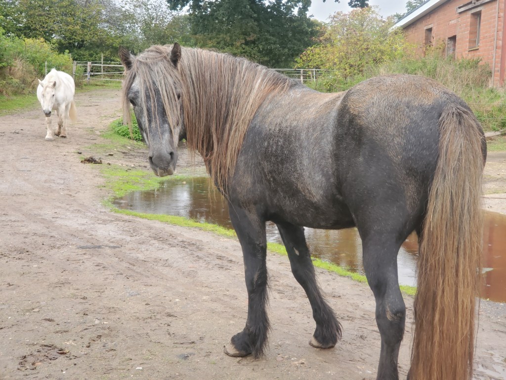Es hat ordentlich geregnet bei uns. Mein Mädchen freut sich, die Bäume freuen sich, die Wiese freut sich. Und wir Ponys sind nass. Das macht aber nix, denn wenn man nass ist, kann man sich so schön panieren und das hebt die Laune ungemein! Die meisten Menschen behaupten, Schimmel seien viel dreckiger als andere Pferde – dabei stimmt das gar nicht! Man sieht den Dreck auf dem weißen Fell nur besser. Aber das ist gar nicht der Grund, weshalb mein Mädchen keinen Schimmel mehr wollte. Sie findet einfach andere Farben schöner, das ist alles. Aber ein gutes Pferd hat niemals die falsche Farbe und ich bin der beste Schotte diesseits der Regenbogenbrücke und also ist es vollkommen egal dass ich ein Schimmel bin, sagt mein Mädchen. Und es ist ihr auch vollkommen egal, wenn ich mich paniere. So lange ich rechtzeitig zum satteln wieder trocken bin und das hat gestern gut geklappt. Sie hat also die getrocknete Panade abgebürstet und dann ging es zum Dienstagsausflug. Und was soll ich sagen: mein Ausreitkumpel und ich haben wieder perfekt abgeliefert und unsere Mädchen haben nur so geschwärmt. Wir sind eben einfach die besten Ponys 2.0!