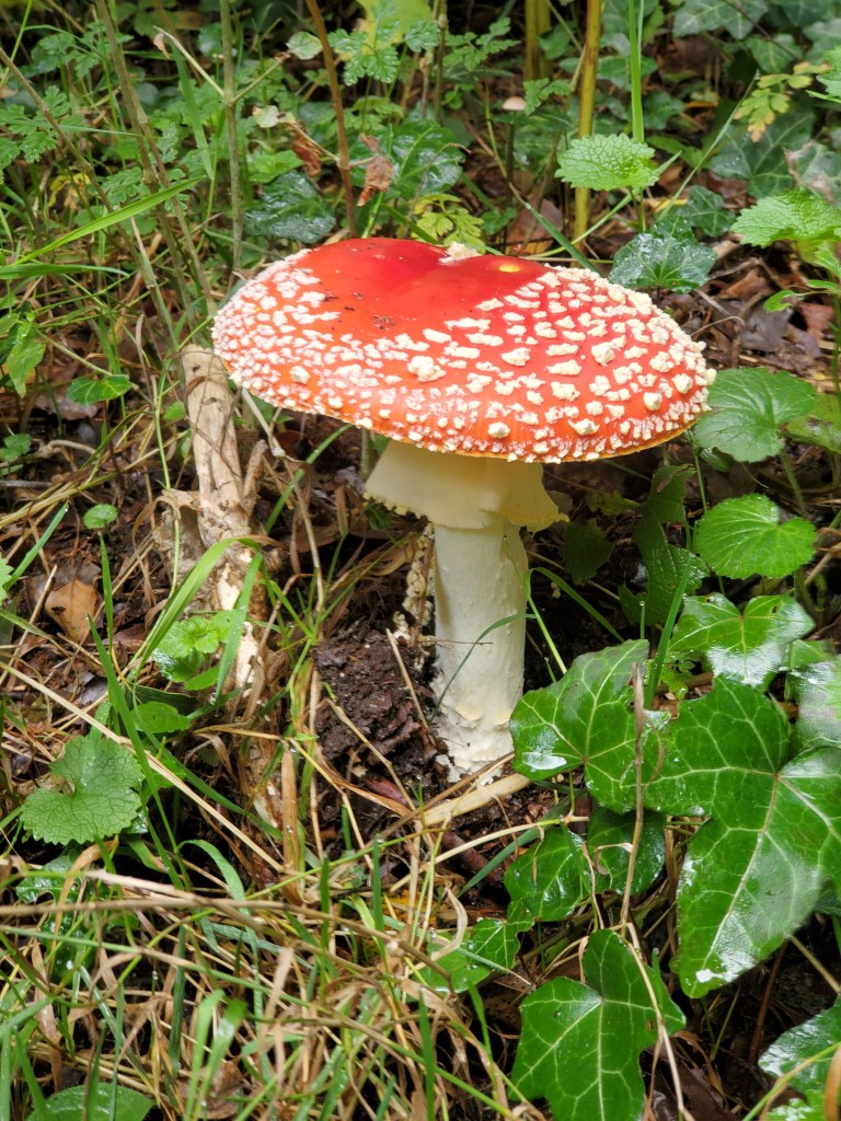 Also konnten wir unbeschwert weiter reiten! Wir haben uns aber kurz danach erst noch ein Päuschen mit einem Häppchen Gras gegönnt. Dabei haben wir diesen Prachtkerl von Pilz gesehen. Da waren noch mehr so riesige Dinger im Wald, aber dieser war der schönste, weil der auch so schön leuchtet!