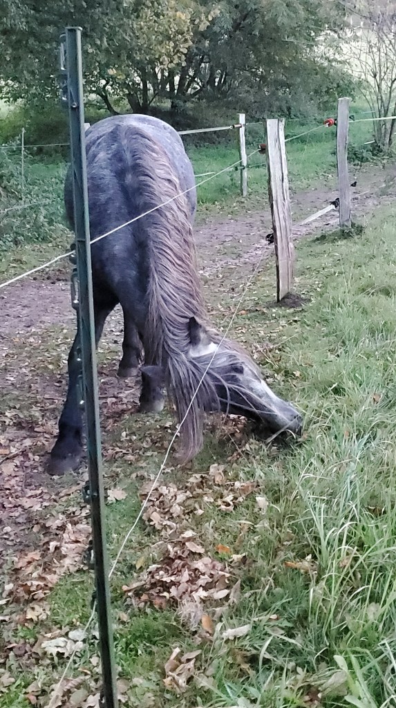 Mal sehen was ihr noch so einfällt diesen Herbst. Wir Ponys tanken derweil nochmal Kräfte für den Winter: Sonnenschein, Eicheln (zu wenige, mein Mädchen schnappt sich immer der Löwenanteil!), ein paar Äpfel, die den Weg in unseren Paddock finden (siehe Eicheln…) – alles saugen wir in uns auf. Dann machen wir daraus Winterfell und eine kleine Speckschicht, falls doch mal schlechte Zeiten kommen (die kommen! Weil mein Mädchen was von „Diät“ sagt und kalorienarmes Öko-Heu im Schober liegen hat …..).