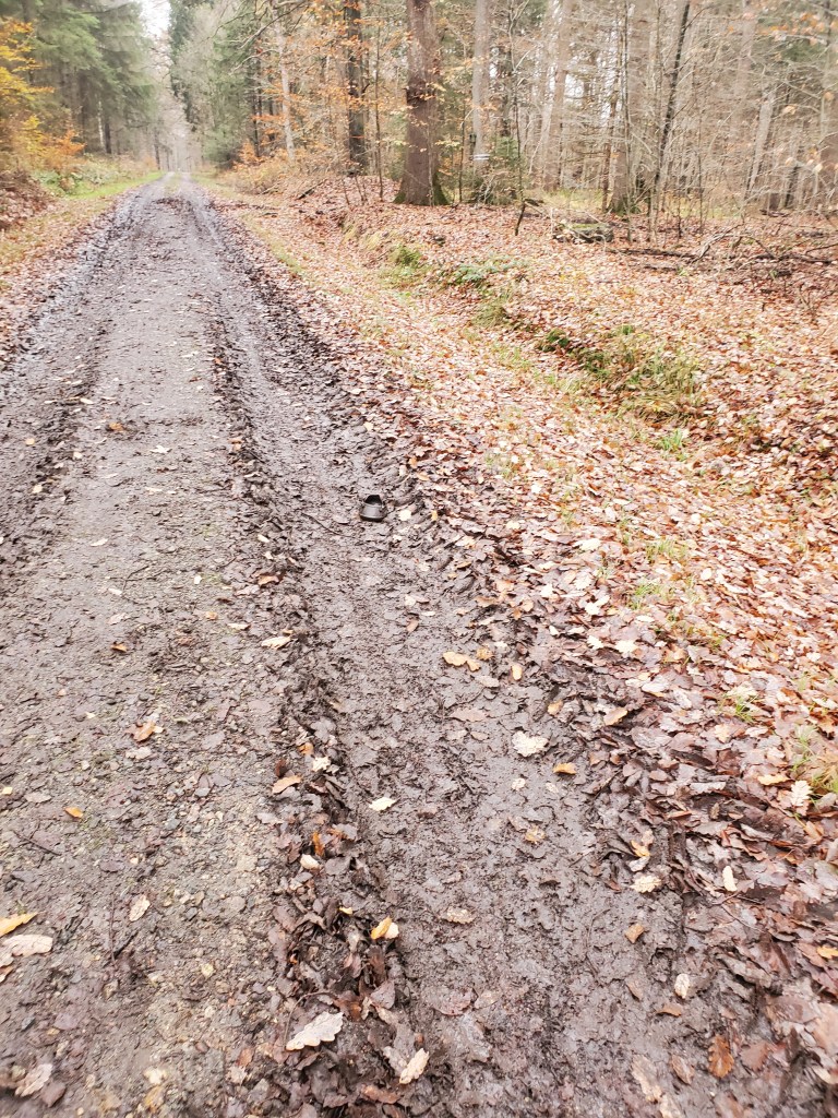 Wir haben den Tag auf die denkbar beste Art verbracht: mit einem Ausflug in den Wald! Ach, herrlich, endlich mal wieder in die Wackelkiste und in unseren Lieblingswald! Dort haben wir nochmal neue Wege ausprobiert. Wir waren alle gut gelaunt und das Wetter war fein – nicht zu warm, sondern etwas feucht und neblig, so richtig herbstlich.