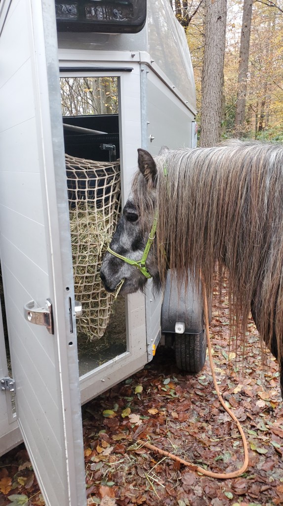 Wieder an der Wackelkiste angekommen, brauchte ich erst mal schnell ein paar Halme Heu, die ich mir durch die Kekstür geklaut habe. Wir Ponys hatten ordentlich geschwitzt, mein Mädchen war froh, dass wir wenigstens an der Brust unsere kleine „Lüftung“ haben. Ich war kopfmüde und mein Körper fühlte sich auch seeeeehr entspannt an. Immerhin waren es durch den Hufschuh-Extra-Weg ganze 10,6km die wir hinter uns gebracht haben, in knapp zweieinhalb Stunden! Und es gab wirklich auch viel zu gucken auf den neuen Wegabschnitten. Aber ihr wisst ja: ich mag es, mich auszupowern.