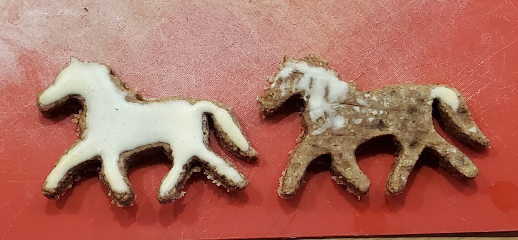 Wo war ich? Ach, richtig, die Weihnachtszeit. Und die Zimtplätzchen. Da mein Mädchen den lieben langen Tag nur an Ponys denkt, tut sie das auch beim Backen. Also schaut, was sie gebacken hat!