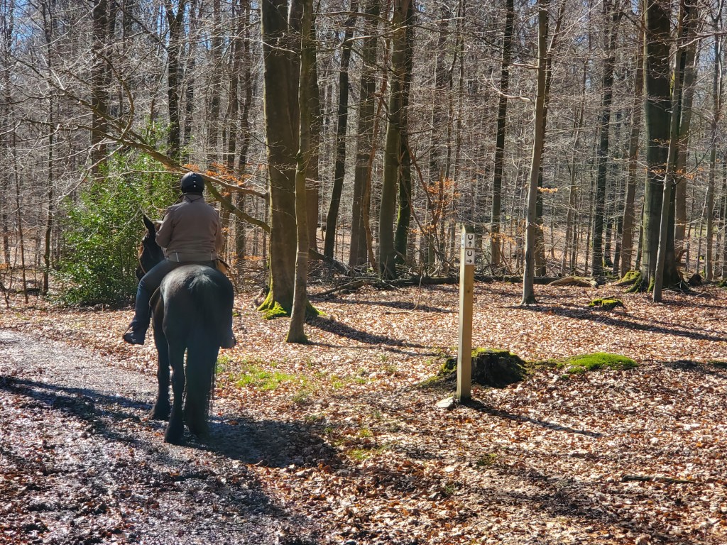 Mein Mädchen hatte Lust, mal wieder in unseren anderen Lieblingswald zu fahren. Der ist etwas weiter weg, dafür aber noch viel schöner. Sie hatte erst überlegt, ob wir unsere derzeit üblichen 10km mal etwas erweitern, aber dann hat sie sich dagegen entschieden und wollte lieber nochmal ganz genau ausbaldowern, wo da jetzt die neuen Reitwegeschilder stehen – das ist nämlich teilweise verwirrend. Also hat sie 9,7km geplant.