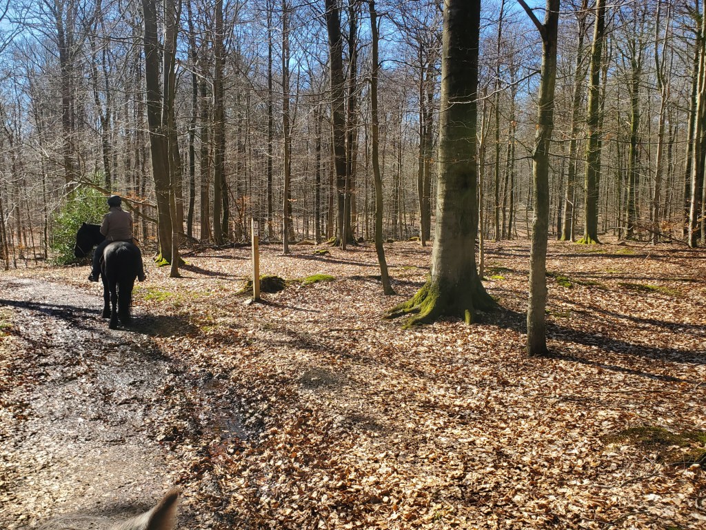 Los ging es bei allerschönstem Sonnenschein über den allerschönsten Waldweg. Wir Ponys waren gut gelaunt und ich bin fleißig marschiert. Mein Mädchen meinte, ich wäre wieder viel lockerer und das wäre gut. Dann mache ich größere Schritte und federe mich besser ab, sagt sie. Ich hab ein bisschen Turboschritt eingelegt.