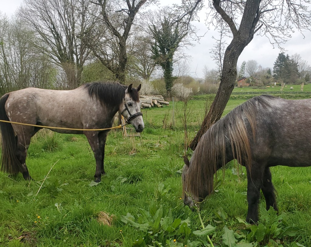 Heute war kein Ausritt angesagt, weil bei Diego eine Schraube locker ist. Nein, nicht was ihr denkt, nur an seinem Sattel! Deswegen haben wir uns entschlossen, das Abenteuer von neulich zu wiederholen: Besuch bei fremdem Pferd! Diesmal in der Version für Fortgeschrittene – soll heißen: ohne Diego. Nur ich allein in die Wackelkiste und los ging die Reise. Wieder zu dem Araber, den ich an Ostern schon gesehen hatte – wieder auf die tolle Weide! Ooooooh da ist das soooo schön grün und lecker!