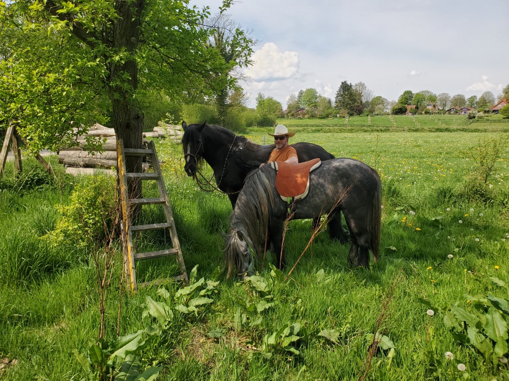 Zum Glück gab es danach eine leckere Runde Gras für uns: Ich sag es euch: der Schimmelfreund, der wohnt im Paradies! So viel grünes Gras! Ich war echt traurig als mein Mädchen meinte, dass wir wieder in die Wackelkiste einsteigen sollen. Können wir nicht hier bleiben? Nein, ab nach hause. Tschüss, mein Schimmelfreund! Wir kommen wieder!