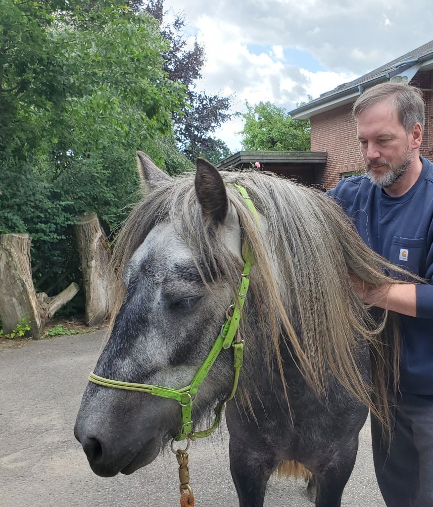 Jedenfalls war die Osteopathie dann beendet und ich wurde „geheilt“ in den Stall entlassen. Mein Mädchen hat nochmal gegrübelt, seit wann ich wohl so schief bin und ist zu dem Schluss gekommen, dass das wohl seit der schlimmen Gewitternacht so ist, als wir bei dollem Regen und mehreren Gewittern auf der Weide waren. Da hab ich mich wohl verspannt und jetzt merkt sie sich: in Gewitternächten gibt es Heu statt Weide, damit wir mehr drin bleiben und wenn es doch mal so ist, gibt es tags darauf extra Wellness und gezielte Pony-Yoga-Übungen, damit alles wieder locker wird.
