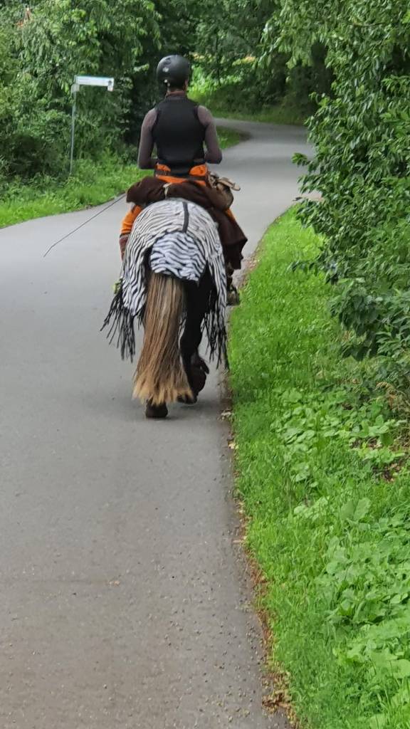 Ich war eher gemütlich gelaunt, aber trotzdem haben wir ein kleines Galöppchen hingelegt, einfach so, weil wir das jetzt so gut können. Ansonsten sind wir fast nur im Schritt unterwegs gewesen, 10km in 2 Stunden.