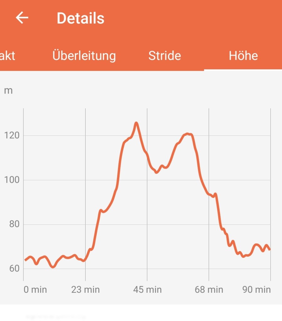 Sie hat dann wieder diese Sachen gesagt: „Pubertät“, „von Kraft geträumt“, „hält sich für den König der Welt“ und „ich hätte es wissen müssen, so fit wie der am Donnerstag noch war“. Ja, Mädchen das hättest du wissen müssen und deswegen hättest du auf dieser kurzen Runde (ja, knappe 9km sind jetzt eine kurze Runde, so verschieben sich die Maßstäbe!) einfach mehr Tempo einplanen müssen!