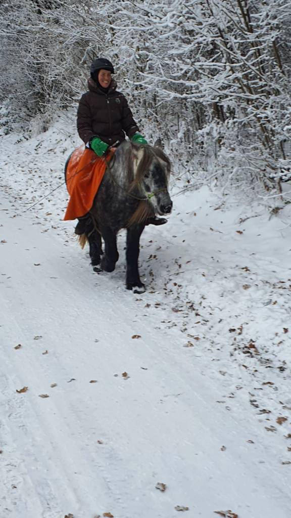Mein Mädchen hat versprochen, wenn der Schnee weg ist, fahren wir endlich mal wieder mit der Wackelkiste los und machen einen vernünftigen Ausritt mit Trab und Galopp. Ich bitte doch sehr darum! Dieses ewige Platztraining ist schön und gut aber eben kein Ersatz fürs Rausgehen! Aber jetzt genießen wir noch das schöne weiß.