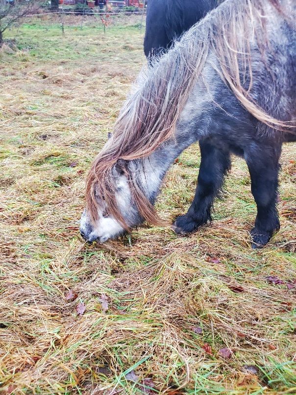 Wir haben dieses Jahr ganz besondere Weihnachten, denn wir Ponys dürfen sogar jetzt noch ein bisschen auf die Weide! Jeden Tag eine Stunde. Wenn das Frühjahr rechtzeitig kommt, hat mein Mädchen ausgerechnet, dann haben wir vielleicht bis dahin noch genug altes Gras und können dann direkt zum neuen übergehen. Das wäre doch fein! Aber erst mal genießen wir, dass wir überhaupt noch Gras zum Naschen haben. Auch wenn es heute doch recht ungemütlich war, windig und nieselig. Aber egal.