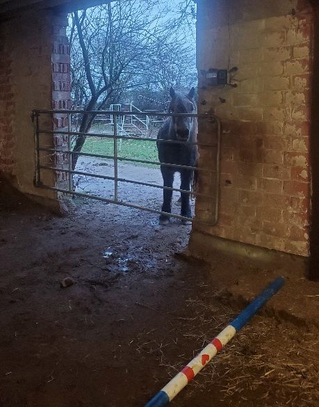Danach haben wir uns erst mal in der Halle versteckt und gewartet bis es wieder Heu gibt und nach dem Heu hat mein Mädchen mit uns in der Halle ein bisschen Stangentraining gemacht – erst mit mir, dann mit Diego. Ich hab bei Diego die ganze Zeit zugeschaut, ich hätte schon auch noch ein Ründchen mehr gedreht! Ehrlich gesagt ist mir nämlich etwas langweilig bei dem miesen Wetter. Den ganzen Tag so im Stall rumhängen ist ganz schön öde, aber draußen sein wollen wir halt auch nicht so recht, wenn der Regen uns waagrecht ins Gesicht klatscht. Morgen soll es besser werden, hoffentlich können wir dann mal schön ausreiten gehen.