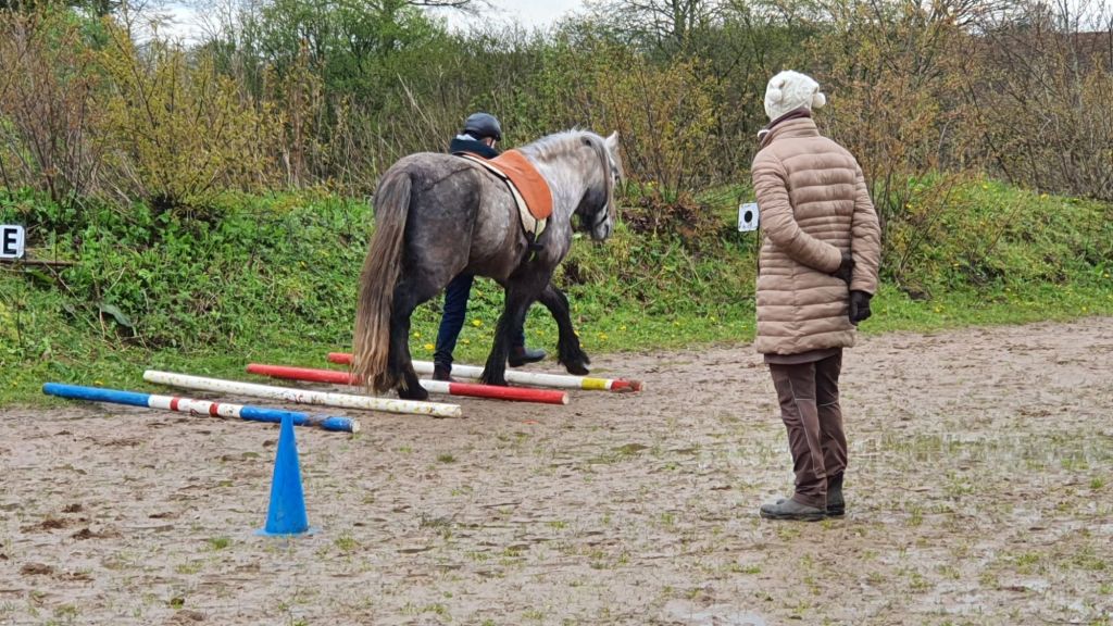 Erst haben wir wieder führen geübt. Weil die Stangen noch da lagen von unserer letzten Doppellongen-Einheit, hat mein Mädchen einfach noch ein paar andere Sachen hingelegt und die Stangen schön in die Führaufgabe integriert. Das klappt jetzt schon ganz schön gut mit meiner kleinen Freundin und mir! Sie weiß jetzt viel besser Bescheid, drückt sich klarer aus und ich weiß, dass ich es gar nicht immer so ganz eilig haben soll. Mein Mädchen war entzückt!