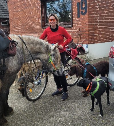 Danach ging es im Schritt zurück. Also ich hätte ja schon gerne noch eine Runde gedreht, aber so einen Drahtesel zu reiten ist wohl kein so großes Vergnügen wie auf einem Pony, daher waren wir nur knapp 7km unterwegs. Ich hoffe, mein Ausreitkumpel ist bald mal wieder fit! Jedenfalls haben wir beschlossen, dass das eine ganz vernünftige Alternative ist mit dem Drahtesel, damit ich überhaupt mal raus komme. Und mein Mädchen weiß jetzt, dass ich kein Pony als Begleitung brauche, es reicht ein Mensch und vielleicht ein paar Hunde. Und eines Tages, sagt sie, sind wir beide uns so sicher, dass wir es auch ganz alleine wirklich gut können. Heute sind wir dem jedenfalls wieder einen kleine Schritt näher gekommen.