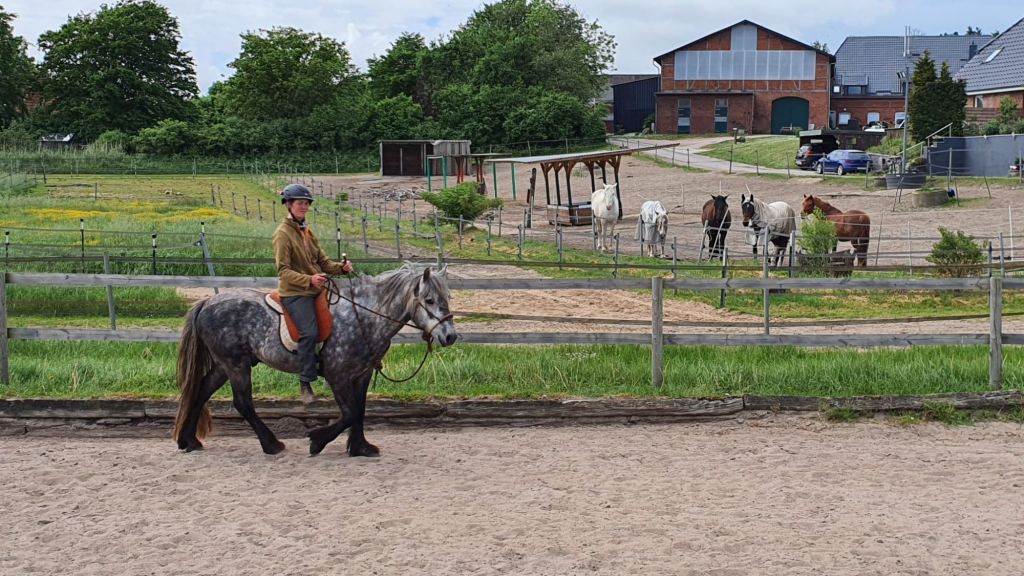 Ich bin ein vielbeschäftigtes Pony. Am Montag war ich ja mit dem Mädchen vom Ausreitkumpel und der Gazelle unterwegs, am Dienstag vormittag habe ich mit meinem Mädchen Doppellonge geübt, am Dienstag nachmittag kam dann noch meine kleine Freundin vorbei, am Mittwoch war ich mit Willibald von Blamauer zu Stössing unterwegs. Am Donnerstag hatte ich dann frei, weil mein Mädchen sich erholen musste (ihr wisst ja, sie meint dann immer, dass ICH eine Pause bräuchte). Am Freitag haben wir reiten geübt auf dem Platz, das war sehr aufregend, weil alles voller Huchmampfs war – das ist im Frühling so, wenn alles wieder grün wird! Da kann ich ja auch nix für, mein Mädchen! Am Samstag hat mein Mädchen viel gearbeitet und hatte dann so viel Sonne abbekommen, dass wir lieber in der Halle geblieben sind im schönen Schatten und uns mit dem Steg und der Wippe beschäftigt haben. Diego und der Mann haben auch mitgemacht und ich bin meiner neuen Übung „Deichläufer“ ein großes Stück näher gekommen! Demnächst bekommt ihr mal ein Video.