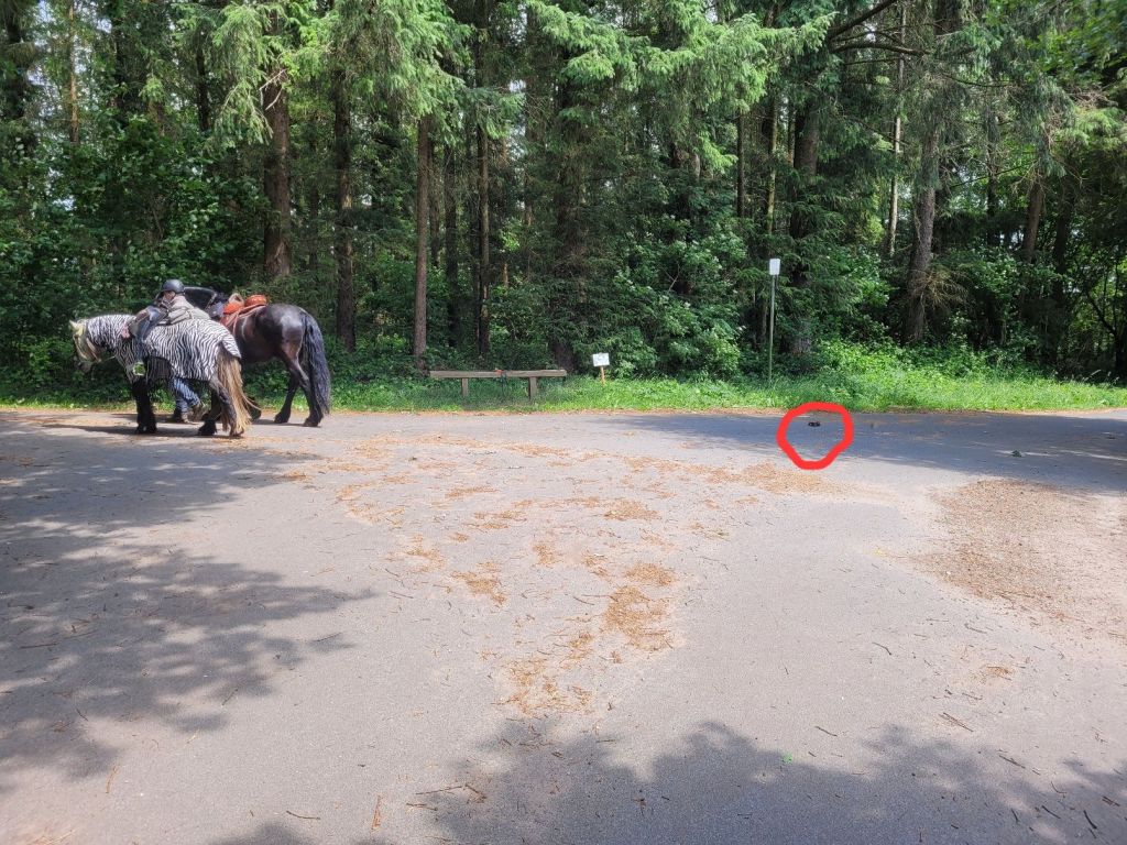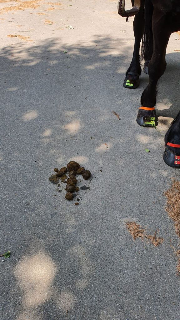 Diego hat das mit dem Distanzritt sehr ernst genommen und sich bemüht, die Strecke schon mal ordnungsgemäß zu markieren. An jeder Kreuzung ein Äppelhaufen! Mein Mädchen hat ihn dafür doll gelobt. Nur an einer Stelle hat er es verkackt (wenn ihr das Wortspiel gestattet). Da haben wir Graspause gemacht und mein Mädchen wollte kurz auskundschaften, welcher von den beiden möglichen Wegen wohl der schönere wäre. Und da hat Diego so mitten auf die Kreuzung geäppelt, aber zu weit rechts, wir wollten nämlich dann links abbiegen. Mein Mädchen meinte, das wäre ja wohl nix.