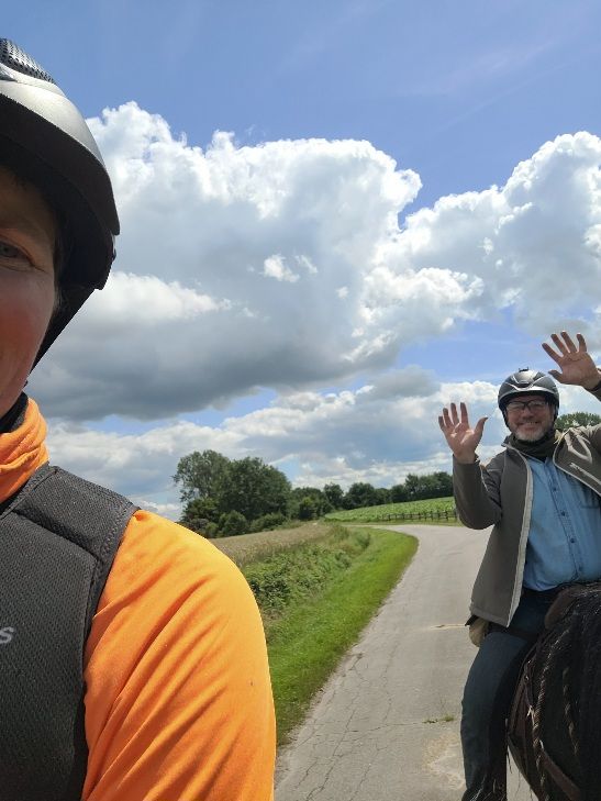 Danach war der Ausritt recht entspannt. Wir sind schön durch den Wald galoppiert (da ist Diego echt raus aus der Kondition, da müssen wir ran!) und getrabt und nachher durchs Feld im Schritt getingelt. Da gab es viel zu sehen, Bauernhöfe mit Rindern, ein Mann der Holz gespaltet hat, Hunde und so, das war schon interessant. Nach gut 9km waren wir wieder an der Wackelkiste, das hat uns diesen Sonntag auch gereicht. Es war sehr windig und die Nächte waren nicht ganz so entspannt wie sonst, da sind wir nicht sooo laufmotiviert, Diego und ich.