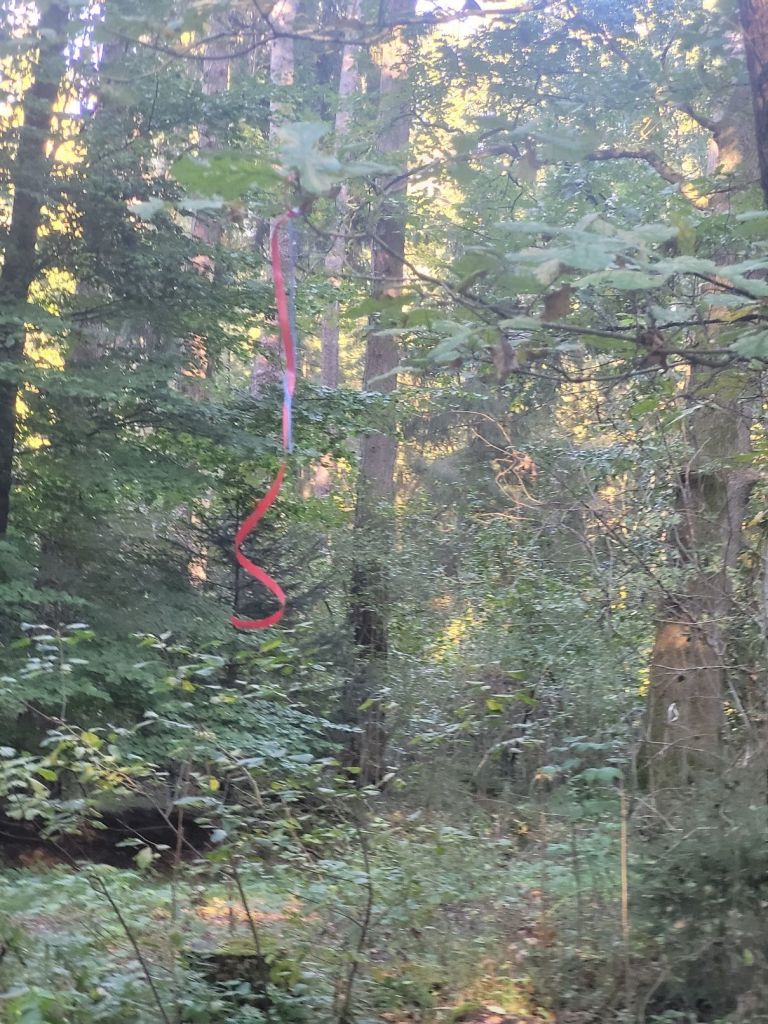 Dann ein bisschen Schritt, noch ein bisschen Trab, wieder Schritt. Zwischendurch hatten wir doch noch Distanzritt-Feeling, denn die Markierungen hingen noch überall in den Bäumen, das hat meinem Mädchen gleich noch mehr gute Laune gemacht, weil sie wieder von einem Distanzritt träumen konnte.