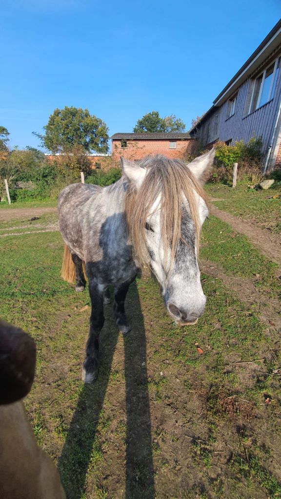Jetzt ist die schönste Zeit zum ausreiten, findet mein Mädchen. Nur dass wir leider nicht ausreiten gehen. Erst hat sie keine Zeit, dann keinen Ausreitkumpel. Aber es gibt doch welche, die auch finden, dass eine schöne Zeit zum reiten ist: die Feen! Die knoten wieder fleißig meine Mähne, damit sie Halt darin finden und dann flitzen wir heimlich gemeinsam durch die Gegend wenn keiner guckt. Mein Mädchen weiß, dass man die Knoten nicht gleich raus machen soll, weil die Feen sonst sauer werden, aber als es immer doller wurde mit meiner Mähne, hat sie sie doch raus gemacht. Die Feen hat das nicht beeindruckt, die haben einfach gleich wieder geknotet. Mein Mädchen hat das wieder raus gemacht, die Feen wieder geknotet. Dann wurde es meinem Mädchen zu bunt und sie hat mir einen Zopf geflochten. Sie findet, da können die Feen sich doch auch guten Halt finden. Ich habe dann rausgefunden, wofür so ein Zopf noch gut ist: Isolation! Und zwar gegen den Stromzaun. Das habe ich dann in der Nacht auch gleich mal ausgenutzt. Wir dürfen ja immer noch nachts auf die Weide, aber uns wird immer nur ein kleines Stück neu zugesteckt. Das war mir jetzt echt zu wenig und ich habe mir überlegt, dass ich das mal etwas erweitern könnte. Habe den Zaun kurzerhand beiseite geräumt und meine Kumpel auf ein Festmal eingeladen. Als der Mann morgens im Dunkeln kam um uns rein zu holen, musste er uns erst mal suchen gehen…. Mein Mädchen hat sich natürlich gleich wieder Sorgen gemacht, dass ich jetzt Bauchweh kriegen könnte von so viel Futter. Klar, Gras bin ich ja den ganzen Sommer gewöhnt, aber sie meinte, es könnte einfach von der Menge her zu viel gewesen sein. Da sie arbeiten musste, hat sie den Mann beauftragt, mich stramm im Auge zu behalten und das hat der dann auch getan.