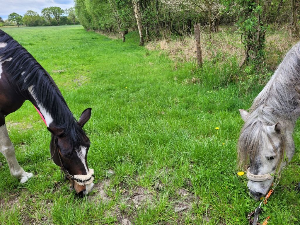 Mein Mädchen sagt, sie muss jetzt in Übung bleiben, sonst wird ihre Angst zu groß. Wir sind also gleich wieder zum Ausreitkumpel und direkt nochmal die selbe Strecke geritten (nur den einen Schlenker andersherum, zur Abwechslung). Ich bin zwar erst nicht motiviert gewesen das heimische Knabbergras, das so großzügig in unserem Paddock wächst, zu verlassen, aber als wir erstmal unterwegs waren, kamen die Erinnerungen an diese Strecke. Also die GUTEN Erinnerungen. Auf der Strecke sind wir nämlich eigentlich immer lässig durchgaloppiert. Erinnerst du dich noch, mein Mädchen? Das war doch toll, oder? Ja, sie erinnerte sich, aber sie findet, ich muss jetzt erst richtig viel Anstand lernen. Tsssss, wer bremst hat Angst! Aber mein Mädchen sagt dann immer „ja und gute Freunde nehmen Rücksicht wenn der andere Angst hat“. Also haben wir im Trab geübt. „Laaaaaangsam“ kam von oben und dann sollte ich im Trab das Tempo reduzieren. Wenn es gut läuft, kann ich das auf Stimmkommando und Sitzhilfe. Wenn es nicht so gut läuft, muss mein Mädchen eine kleine Parade am Zügel geben. Wenn es gar nicht gut läuft…. ach, sprechen wir lieber nicht darüber.
