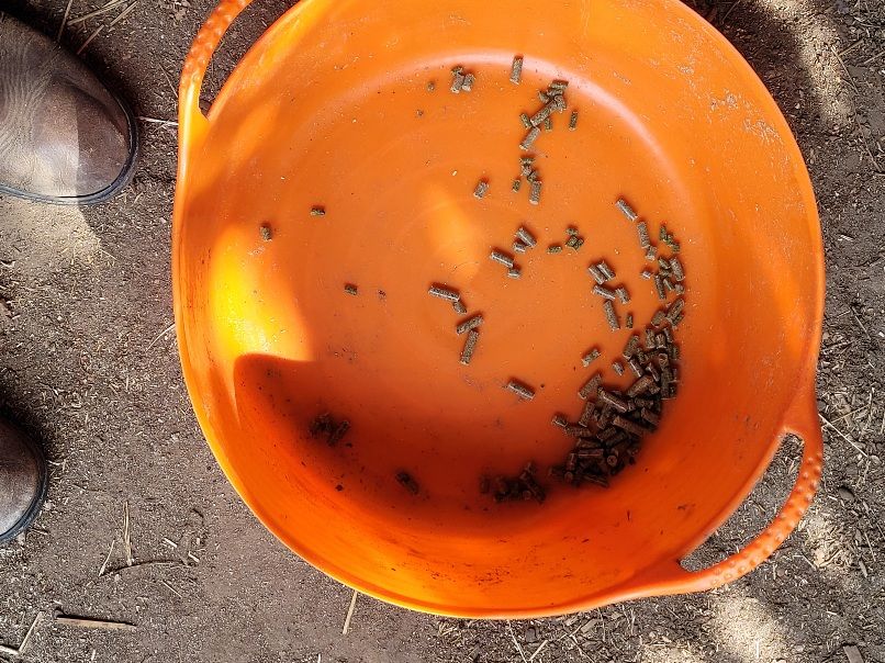 Das ist Deine Sommer-Schüssel. Deine Rüstung sieht mir etwas ausgebeult aus und da ihr jetzt jede Nacht auf der Weide ordentlich Gras futtern könnt, brauchst du keine große Extraportion mehr, nur noch Mineralfutter.