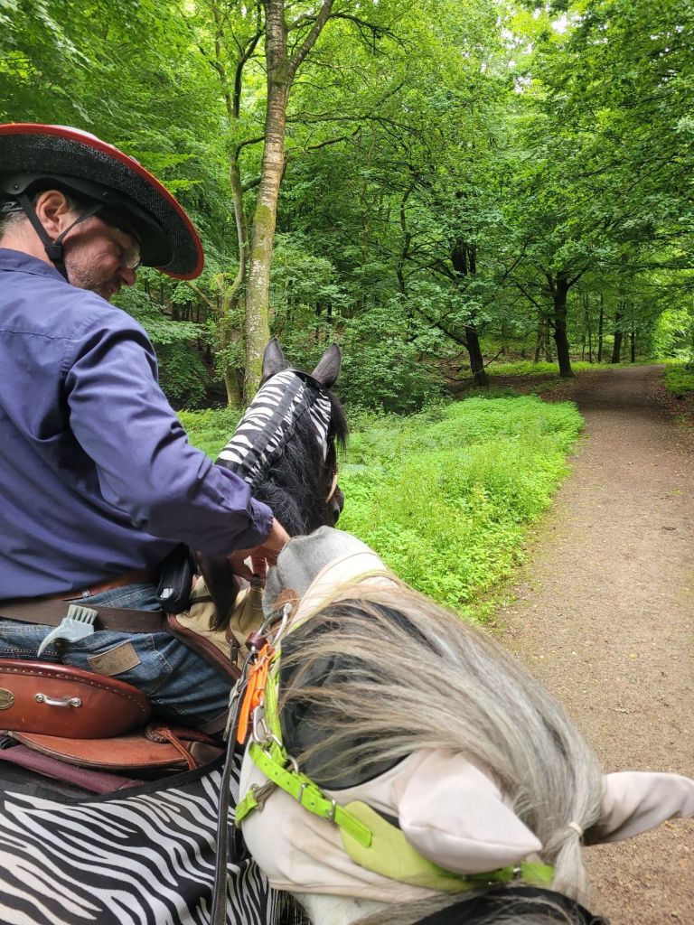 Als wir nach 7,3 km in 1 Std 33min wieder zuhause angekommen waren, hat der Mann dann festgestellt, dass er den ganzen Ritt über den Hufkratzer in der Hosentasche hatte. Er meinte, er sei der Mann, der den Hufkratzer schneller zieht als sein Schatten! Gut, dass mein Mädchen schon abgestiegen war, sonst wäre sie bei dem Spruch direkt vor lachen runtergefallen.