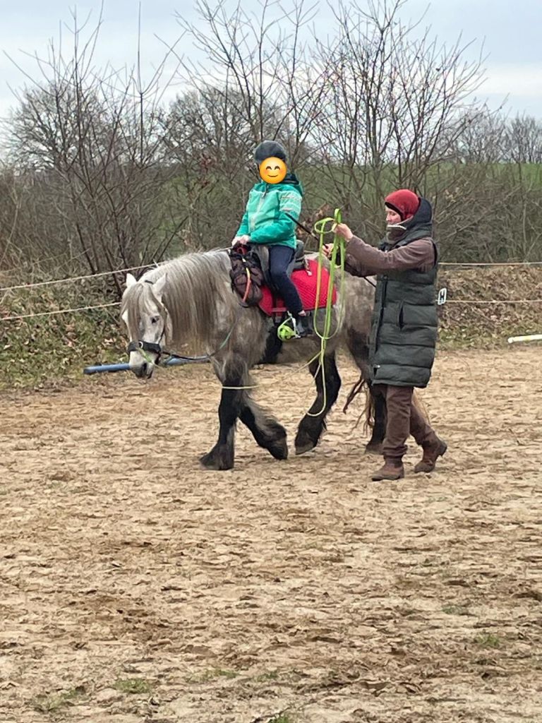 Neulich war meine winzige Freundin mal wieder da. Nach dem üblichen Programm (Parcours aufbauen, alles vorbereiten, mich satteln etc) ist sie aufgestiegen und es ging wie immer im Schritt los. Meine winzige Freundin ist inzwischen so versessen aufs Traben und Galoppieren, dass mein Mädchen immer genau auf die Uhr schauen muss, dass ich meine 10 Minuten Aufwärm-Schritt kriege! In der Zeit übt sie lenken oder turnt sich selbst im Sattel warm. Wie wir so im Schritt herumgehen …