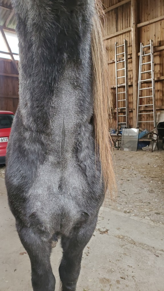 Mittags kam dann die Sonne raus und mein Mädchen war plötzlich am schwitzen, weil sie sich fürs Stall-saubermachen so warm anzogen hatte. Ich sagte es bereits: Fehlkonstruktion! Bemitleidenswert.