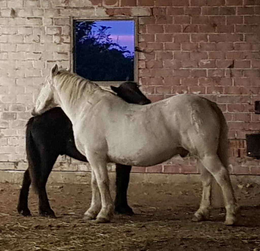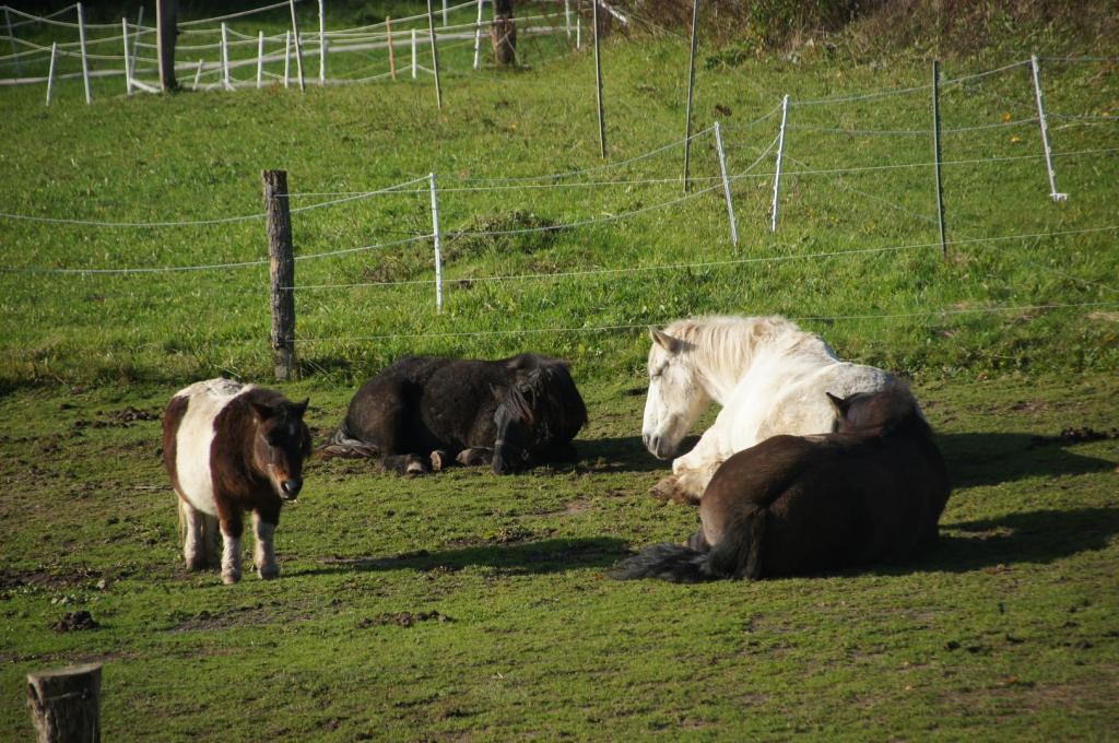 Alle vier erwachsenen Ponys sind sich auffallend einig was Duncan angeht. Wenn er von einem einen Rüffel kassiert hat, kann er nicht zu einem der anderen gehen und sich dort ausweinen– wenn einer ihn ermahnt, ziehen alle anderen mit. Wenn einer sagt „weg von meinem Heu, Du hast Dich ungebührlich verhalten“ sagen alle anderen das auch.
